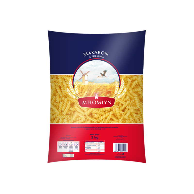 Makaron MIŁOMŁYN produkowany jest ze specjalnie przygotowanej mąki z własnego młyna.